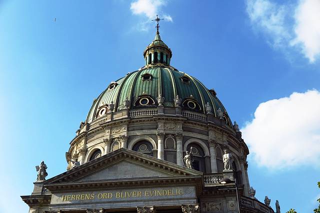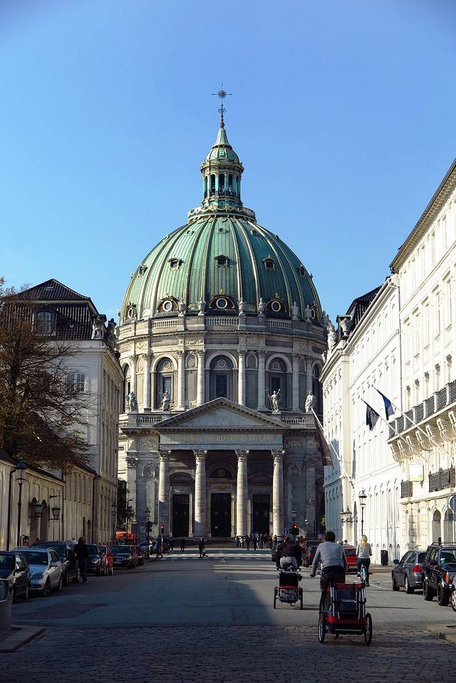 腓特列教堂,也叫大理石教堂,绿色穹顶非常壮观,也是哥本哈根的标志性建筑