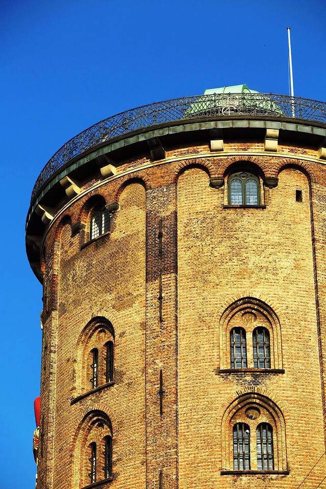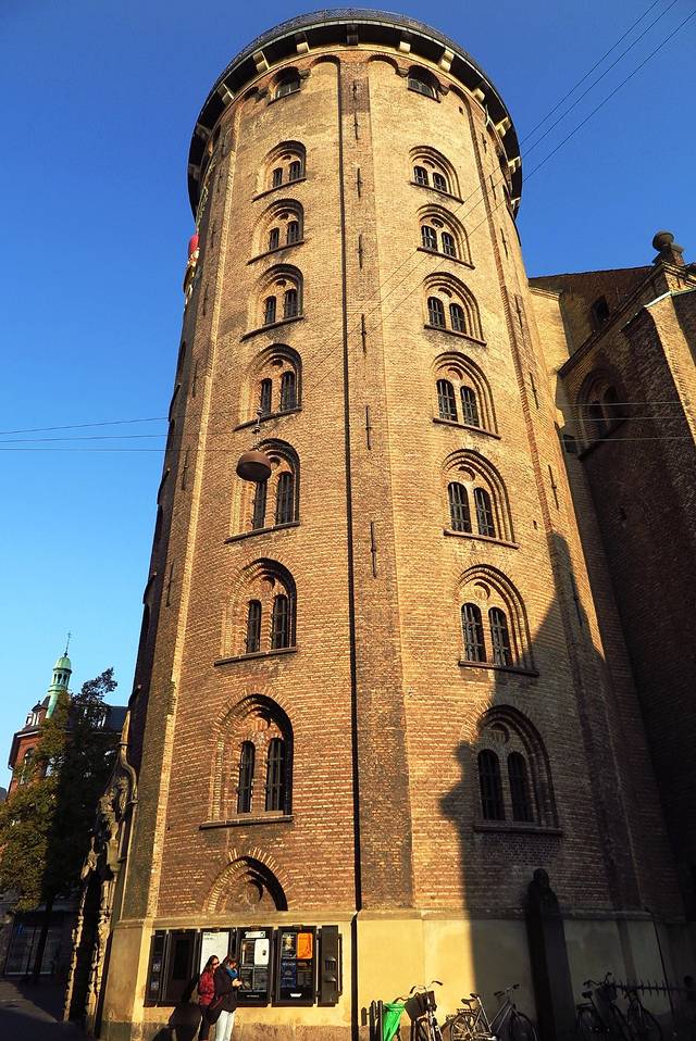 圆塔由克里斯钦四世修建,建于1637-1642年。圆塔是三一教堂建筑群的第一部分,集三种最重要的设施于一身:天文台、学生教堂和大学图书馆。