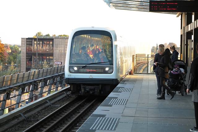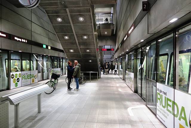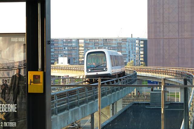 逛完一圈,从DR Byen站坐地铁回市中心,图中为无人驾驶的地铁