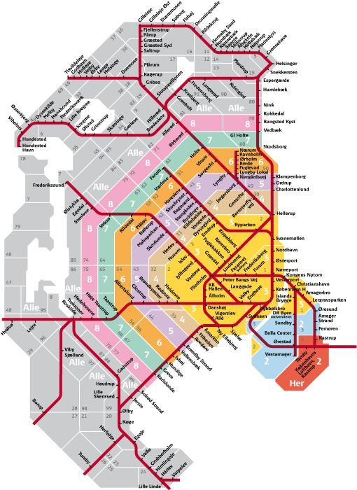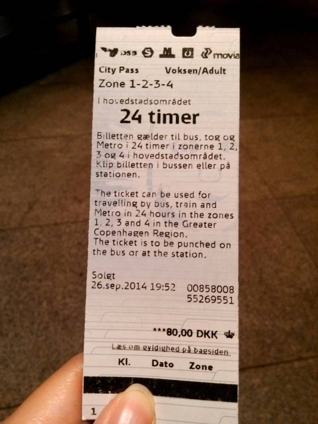 如果要去其他城市如Roskilde, Elsinore or other parts of North Sealand,可购买ALL ZONES 1天票130DKK