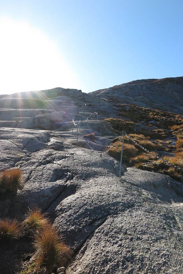 谢拉格山非常变态,一共要翻越三座大山,爬山的角度几乎直上直下,很多地方要手脚并用才行。从图上看奇迹石也就从海拔640米爬到了海拔984米,但因为中间上上下下浪费掉很多功,爬的时候会觉得非常累,跟布道石的难度相比根本不在一个系数。