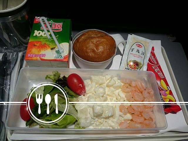 由于是白天的航班,中午起飞,时差6小时,飞到哥本哈根是傍晚,所以飞机上有2顿正餐,一顿中式,一顿西式,中间还发了次点心。连着11个小时吃了睡,睡了吃,在飞机上又不能怎么运动,还是挺撑的。