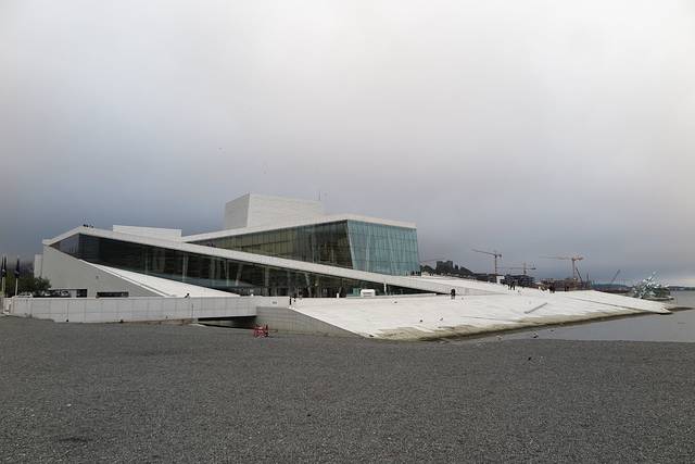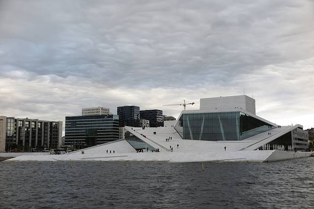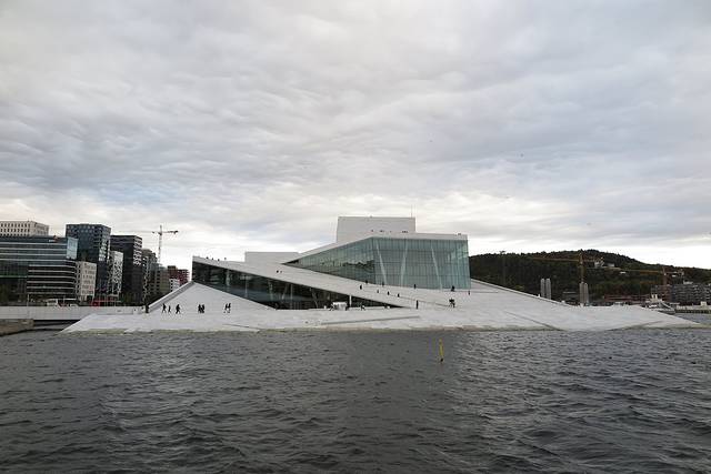 奥斯陆是挪威的首都,也是挪威最大的城市,人口约占整个国家的十分之一。但从游客的角度来看,自然景观没有挪威西部好,城市游又没有哥本哈根好玩,可以游览的景点屈指可数。所以我们的安排也主要把挪威的行程放在西部,奥斯陆只是作为一个中转站,在下火车到上船之间的短短几个小时里匆匆游览一番,省得被人问起连首都都没去过,哈哈。一早出了酒店,距离50米就有一个奥斯陆的标志性建筑——奥斯陆歌剧院。关于这个歌剧院,如果你是第一次听说,那么请先了解一下它赫然的背景:奥斯陆歌剧院建成于2008年,耗资8亿美元,由挪威建筑事务所Snoehetta设计的,是挪威国内最大的文化建筑,外观像一座出水的冰川,获得过多项设计大奖。建成后就立即取代了悉尼歌剧院成为世界最高档的著名歌剧院,被誉为自十九世纪以来全球最佳歌剧院。