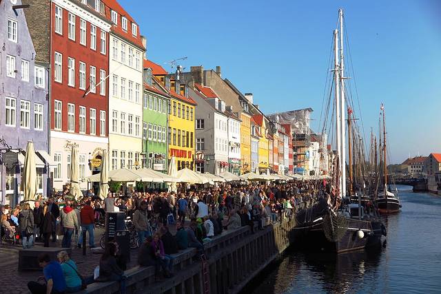 新港(Nyhavn),又是哥本哈根经典明信片之一,是整个哥哈最热闹的地方,一幢幢五颜六色的房子颇有童话气息
