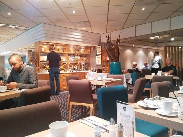 船上有好多家餐厅,最热门的应该是7海自助餐厅了吧,需要提前预定,但味道一般吧,食材也没有特别高档的。免税店的东西很划算,比哥本哈根专卖店里便宜10-20%,北欧的老外在免税店也相当疯狂,丝毫不输给中国大妈。