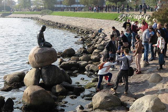 表面看起来,小美人鱼正孤独地等待着她的白马王子。但事实是这里每天都围满了游客,各种旅游大巴停满路边,大家蜂拥而上抢着合影