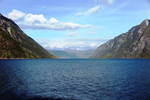 峡湾是由于冰川移动而形成的独特地形。在一万多年前的末次冰期,整个斯堪的纳维亚半岛被厚厚的冰原覆盖,冰原边缘的冰川从高处向下滑动,将山壁磨蚀,形成峡谷。随着时间的推移,冰川开始融化,海平面上升,这些峡谷被海水倒灌后,就形成了峡湾。在整个挪威的西部沿海,可以看到很多陡峭的山壁中细长的峡湾。峡湾的英文fjord这个词就是从挪威语中来的。