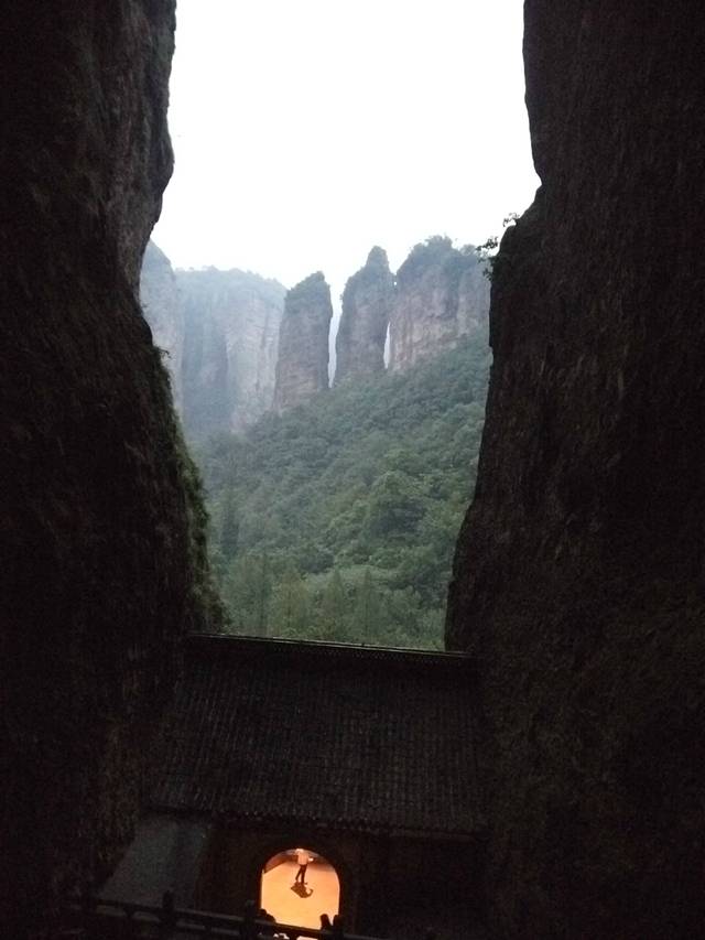 进去转了一圈,发现挺小的,中间一个小广场,周围都是山,转一圈就出来了。我们主要去观音寺看了一下,挺独特的,庙建筑在合掌峰中间的缝隙里,不过也是够爬的了。庙最顶层有水滴下来,接的水保证了工作人员的生活。庙顶的佛像挺神圣的。