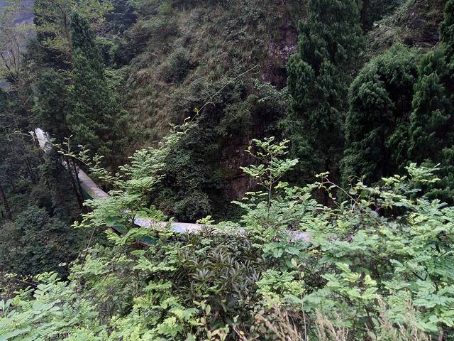 这个石板路可是真难走啊,很陡不算,很滑。不过走这种秘境也挺有意思的。一路上我们碰到4个人。路估计是五六十年前修的,很少人走。走了半个小时到达小龙湫补票点。
