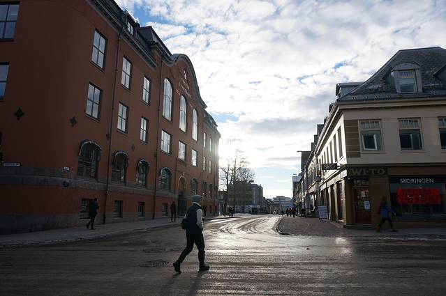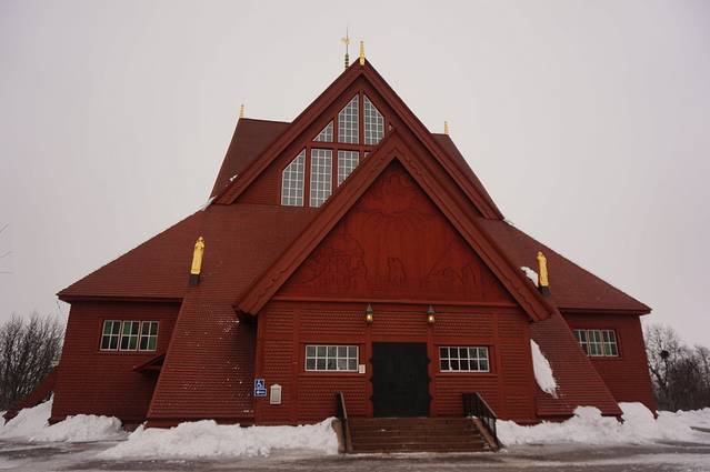 不过既然来了总要在城里逛一逛,照例去了教堂,其他就是闲逛和定晚上的雪地摩托活动,哦对了还有写明信片。这次北欧之行,想着好多朋友可能都向往北欧但未必有机会去,算是到的相对人少的地方吧,所以去之前在朋友圈发了条寄明星片的福利,结果一共发了大概有40多张,之后都不敢这样送福利了呢,除了其实邮费挺贵的(合人民币10几块寄一张吧,还没有算明信片本身的费用,所以光寄明信片就花了大几百人民币),主要是写得好累啊!我想我属于比较啰嗦的,好不容易寄一张有意义的卡片,总是想把它填满,想收到的人不止看到美景,也感受到满满的祝福,于是这一路上每天晚上的节目就是趴在小桌子上写写写,真是把手都要写断了。火车站(也就是长途汽车站)附近有邮局的,在这里寄很方便。