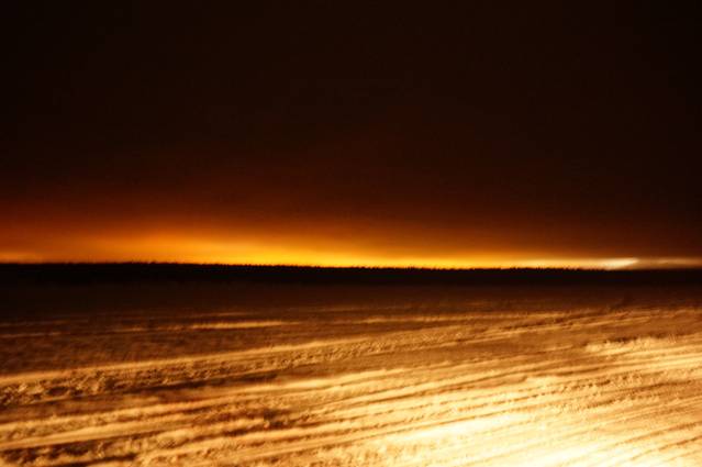 接着,最坑爹的极光团来了。本来昨天就看到极光的我们对今天还能看到充满了信心,就算一路上司机一直在说天气不好云层很厚,我们也没有当一回事,心想本来就是开车去追嘛,总有云层不厚的地方。在车上呆了总也有四个小时,期间司机大叔就兼当导游,这个导游可有点不负责任,上车的时候都没个笑脸,一路也没有讲几句话,沉默着。一开始我还兴奋地看看窗外的风景,后来不知不觉就睡着了。下午五点多发的车吧,大概十一点大叔在一个地方停下,给每个人分了点巧克力,大家都默默无语,估计都饿了累了,也有些失望,原本说好的小食其实就几块饼,没吃饭的我们还是挺饿的,无奈要了第二杯巧克力充饥。没事做对着对面拍了几张照片,纪念一下又贵又冷又累的坑爹极光团。不过也不是所有极光团都不好,之前在网上有看到过有介绍的极光团特别专业,还教你摄影,帮你拍人像,带你去不同的地方拍,可能我们没有赶上高质量的团吧。