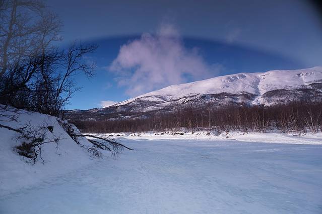 因为之前在Tromso已经见过极光了,我们觉得已经不虚此行了,心态放的很平,再看到当然好,看不到也不遗憾。Abisko青旅前面就是National Park,冬天里积了厚厚的雪。