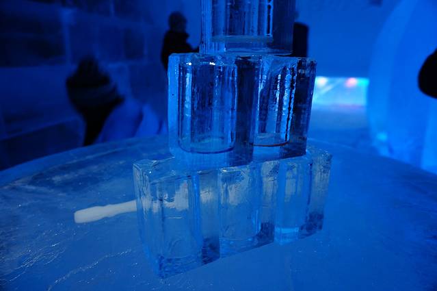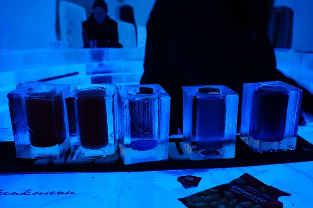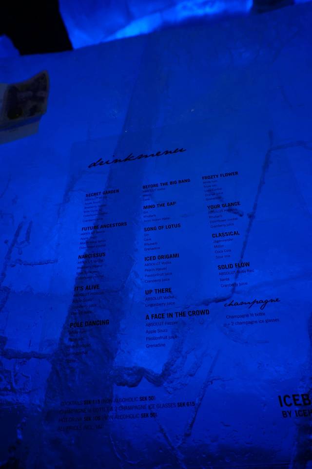 另一个亮点是这个Ice Bar,也是我觉得冰酒店唯一有意思的地方。在冰bar用冰块做的杯子喝一杯鸡尾酒,这种体验还是十分特别的。冰bar里人头攒动,要买一杯酒还要等上一阵,坐的位置早就没有了,我们占上了一个小桌能站一圈已经算不错了。鸡尾酒100出头sek,sek跟人民币差不多吧,现在可能还更便宜了,100多不算便宜,不过也不算太贵了。提醒一下最好戴着手套拿酒杯,不然手容易粘在上面,粘久了要拨开,还是会有点疼的诶。