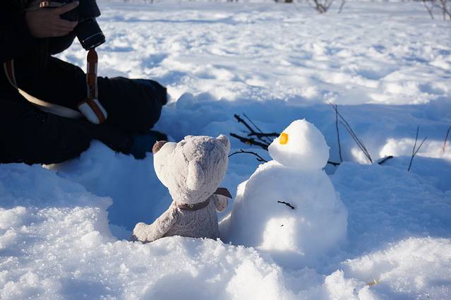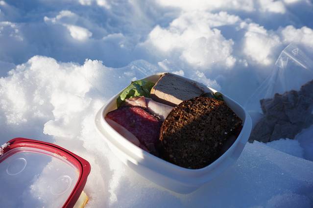 走走停停,各种自拍,集体照,还无聊玩起了堆雪人,中间不忘在雪地野餐,我的饭盒算是带对了。