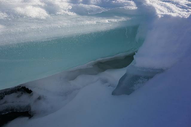 看看人家玩雪橇的这道具,我们两手空空连登山棒都没有。穿过这个小房子就是正统的hiking路线啦。我们出去的时候还走了一条弯路,不过倒是意外地看到了冰洞一样的景色。