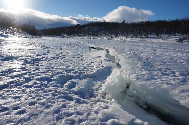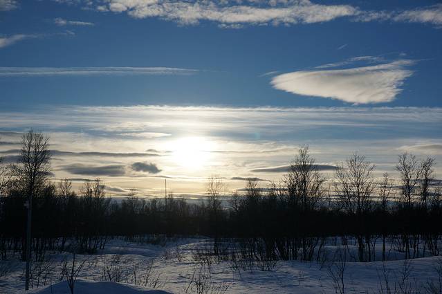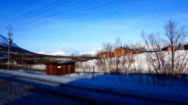 第三天上午坐巴士,经过Narvik换火车到达了北欧之行的第二站Abisko。沿路的风景十分美,想像一下夏天游览挪威海峡是如何不同的美貌。车速比较快只是随便的按了几张。火车上总是特别适合放空,大玻璃窗风景在眼前掠过,心情异乎寻常的平静。