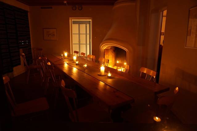 Abisko住的是Turistation火车站旁的大青旅,虽说是青旅算下来也要每人每晚30多欧了,还只是一个床位的价钱。床单被套要另外收费,行李不多的话建议带着,也比较干净,之后住的民宿也是床单被套加钱的,这点上还挺环保。没有国际Hostel卡的话要多每人每晚50sek,当场可以办卡,记得是150sek,我们住了两晚,卡是一年有效的打折的Hostel挺多,不过之后我还没用上。早餐午餐晚餐都有,都是另外收费的,早餐110sek,午餐90sek,晚餐450sek左右(酒水另计),午餐在外面没有吃上,早餐种类还是很丰富的,自助,能吃能带。我特意带了饭盒吃完装上一盒,一群人hiking中间累了休息拿出来补充一下体力。晚餐贵的来也有道理,之前看介绍就说这家虽说是Hostel,餐厅是正儿八经的,晚餐也是三道的简单版整套西餐,配上烛光温暖的氛围,点上一支酒慢慢吃,实在是挺不错的。两晚晚餐去的时候都几乎客满,建议如果晚上要看极光晚餐要早点去,六点一过就能去了,我们第一天就是七点多吃到了九点,错过了小极光。
