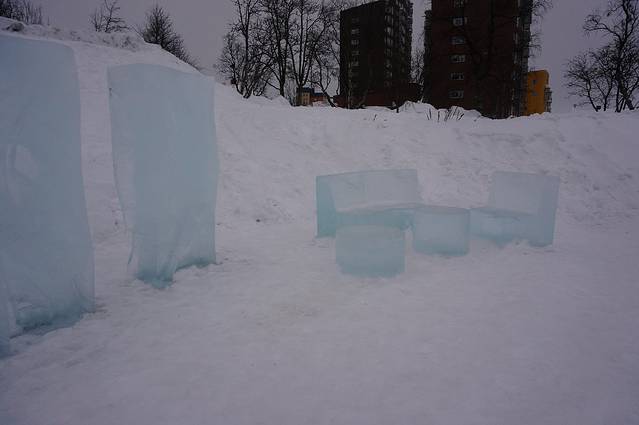 出发前往下一站,也是这次旅行的最后一张Kiruna。火车停站的时候我们还没意识到已经到了,以为只是中途的一个小站,Kiruna这个地方也没有太多特别,要是印象反而是与人们说到北欧印象很不同的,重工业的印象。在Kiruna的几天天也是一般,觉得这地方好像一直也不会晴,阴阴的,隐约还有点雾霾,名声在外的自然就是冰酒店了,也是我们来这里的原因。