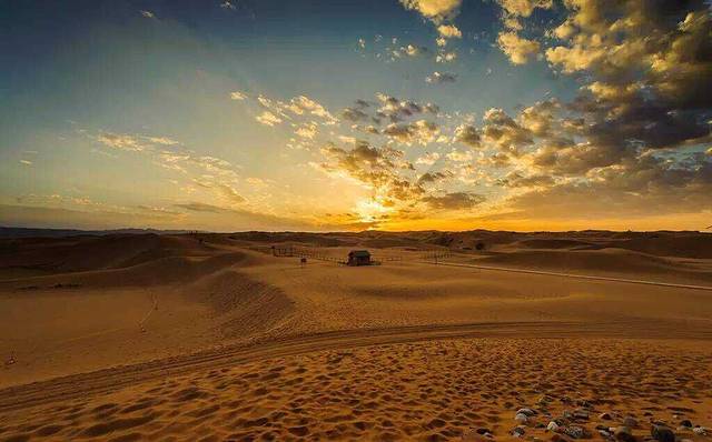 路是断头路,尽头三面都是倾倒的建筑垃圾,里面就是连绵的沙丘。刚下车就被冻回来了,关上车门直打哆嗦!赶紧取出抓绒衣,给儿子穿好冲锋衣,跑到近处的沙山上拍了几张照片,落日正好从远处的沙漠缓缓下落,满天云朵被映照出各种色彩,壮观啊!美丽的奈曼,我喜欢!