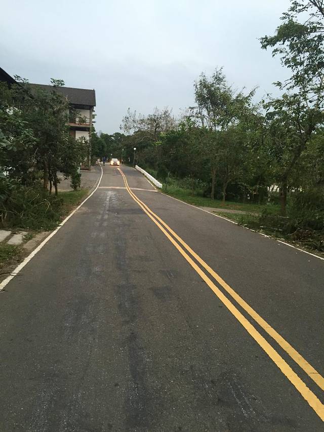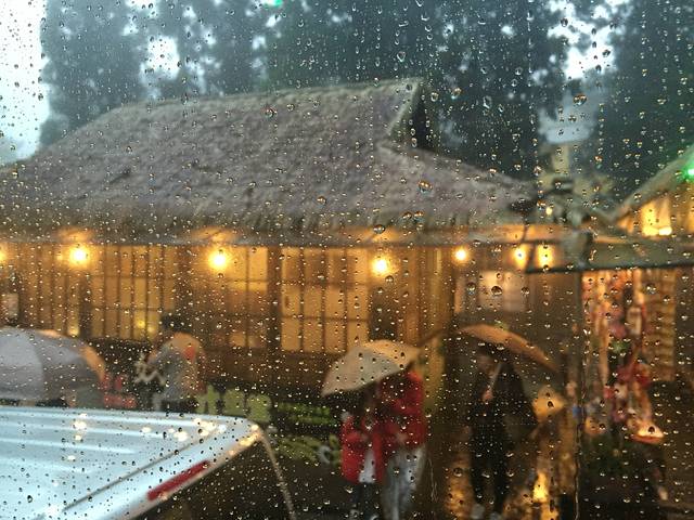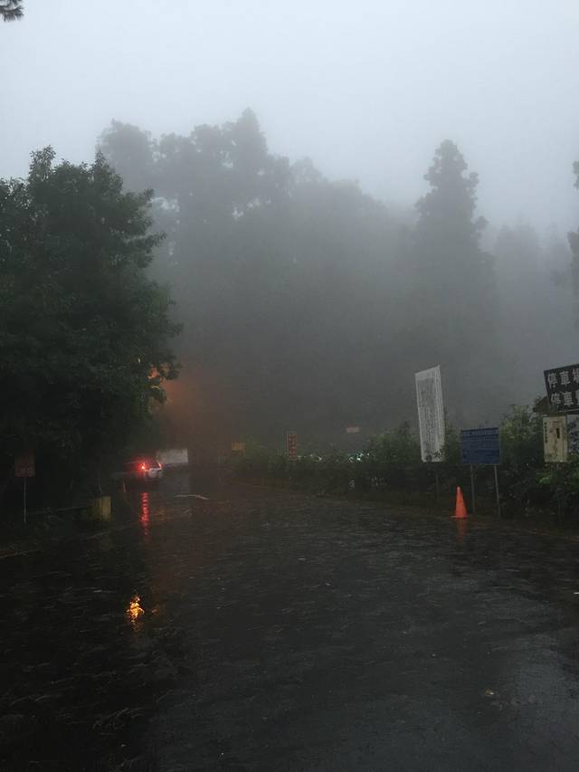 从集集火车站出来左转马路对面就可以乘坐去溪头的巴士,但是台风杜鹃的威力越来越强烈,以至于抵达溪头后直接就坐车返回了台中,这也成为了此次行程的一大遗憾。贴几张车内拍的台风中的溪头吧。