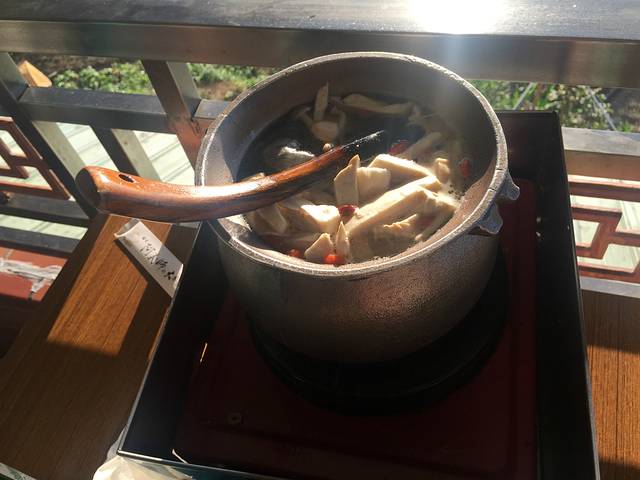 猫空有两大亮点,第一就是可以远眺台北,第二就是猫空茶。在山上最多的就是茶社或者茶餐厅了,网评比较好的就是阿义师的大茶壶。由于正值下午,找一个靠西的桌子坐下,点一个双人套餐,就可以惬意的品尝茶料理以及观赏日落了。我吃完饭太阳已经落山,为了更好的视野,我们到了阿义师的二层,两层不是一家哦。在这里我们要了一壶茶,边聊天边欣赏着台北的夜景,真的很悠闲,几天的疲乏此时已经荡然无存。