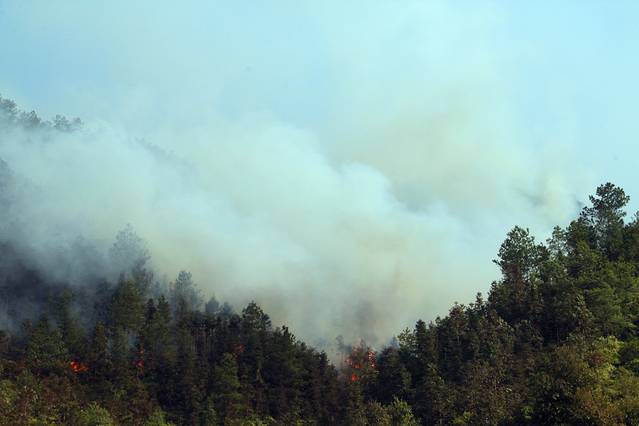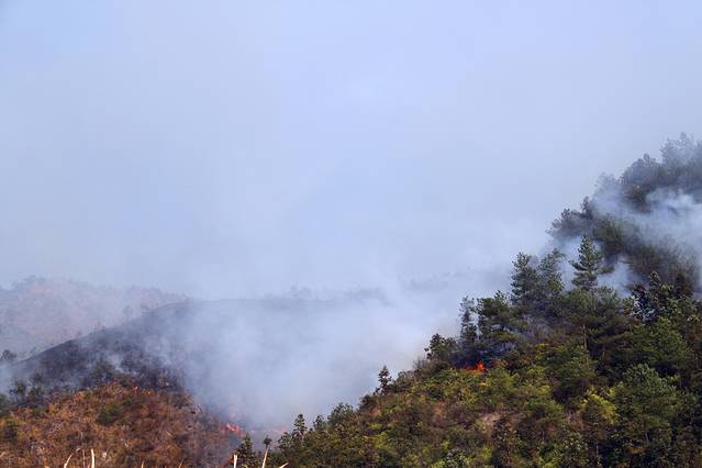抬头往山上望,尚不见山门的影子,此时刚好有一人骑摩托车上山,便询问路程,他告诉我还有3公里到达山门,并指着山顶上的电视差转台说“就是那”。