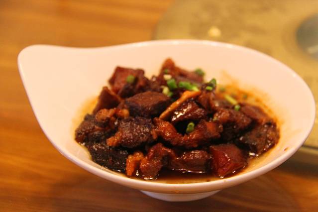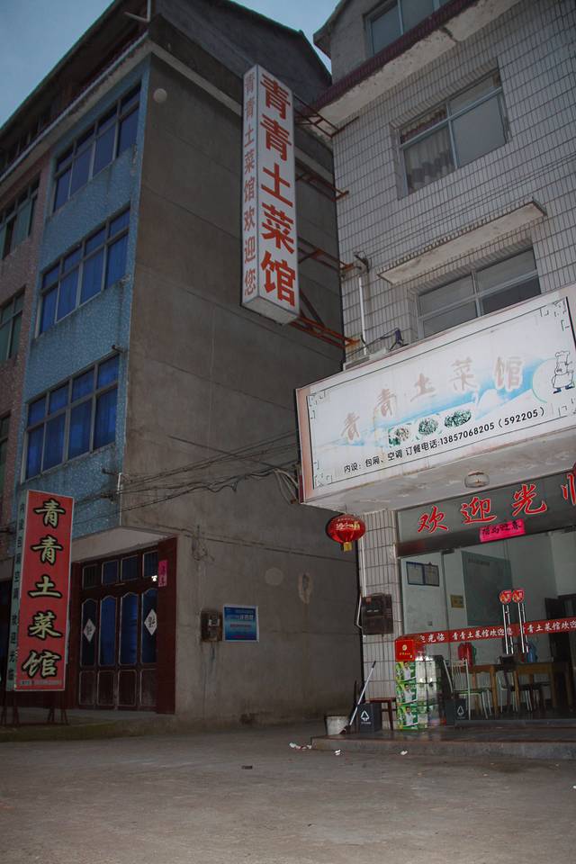 晚餐在依山宾馆对面的青青土菜馆解决,二荤一素才40元,饭没算钱,葡萄酒是我自己带去的,晚上喝点小酒解解乏。老板娘推荐的柚子皮炒肉不好吃,动了两下筷就舍弃了。包厢是老板的卧室改的。老板对儿子很宠,给富二代买的是炒到天价的牡丹烟。10元一包的烟炒到了百元,民间传说某某喜欢抽这种烟。
