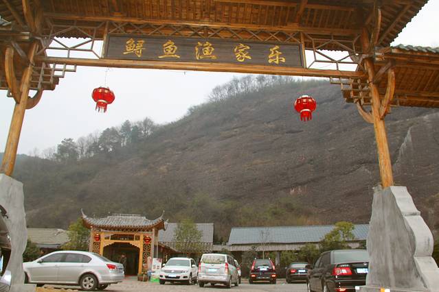 从九龙湖去烂柯山的路上发现有一座很气派的山庄,原来是鲟鱼渔家乐农庄。到庄门口一看,好家伙,里外停满了四、五十部车,庄主不发死都不行。
