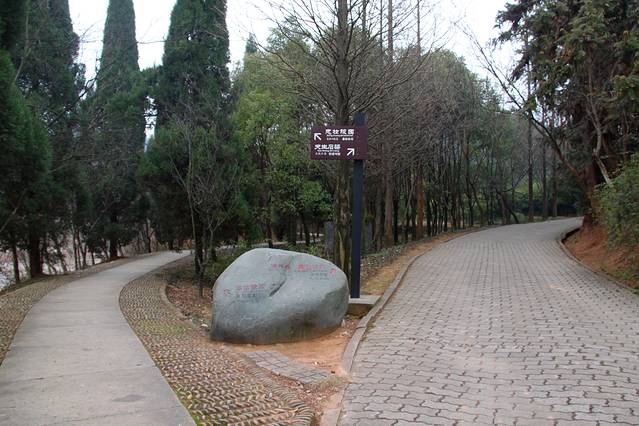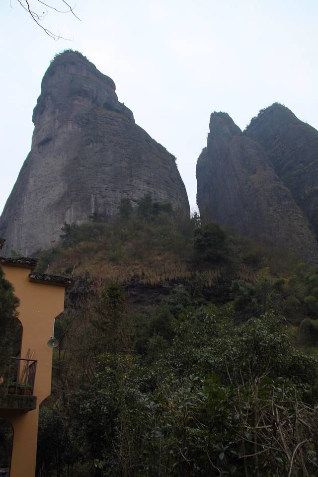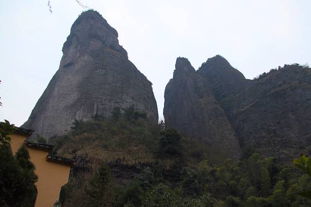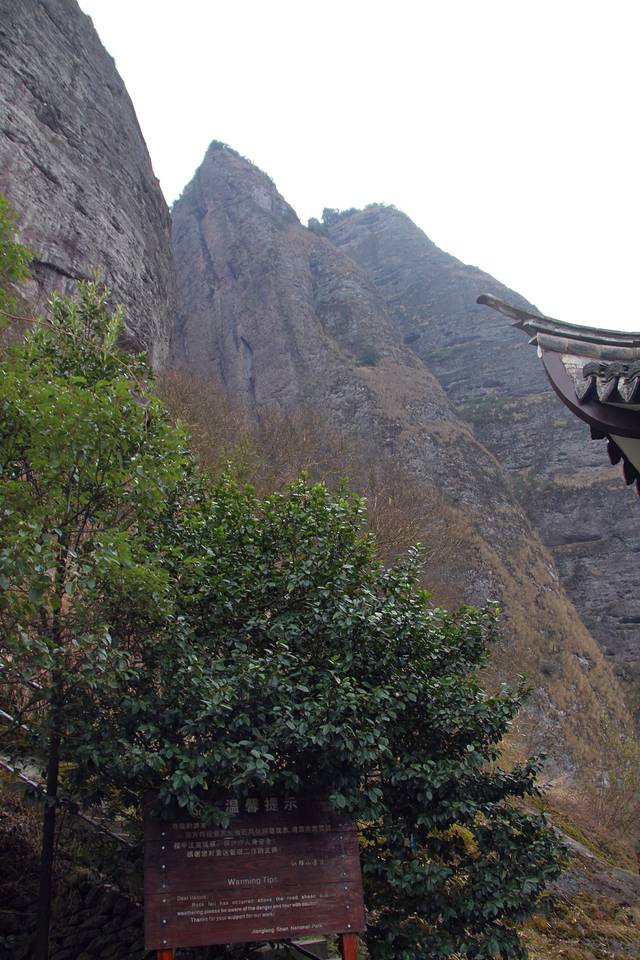 独自向江郎山进发,在分岔口有块标示,一边指向游客中心,一边指向三片石。我当然选择三片石。三片石是村民的传统俗称、形象说法,专家称为伟人峰、亚峰、郎峰。