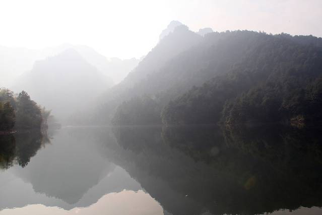 在忂州南下了高速,走了很长的连接线,拐了很多的弯,才到达九龙湖。售票处前有个停车场,要收我10元,“我拍几张照片就走”,他便没下一步动作了。