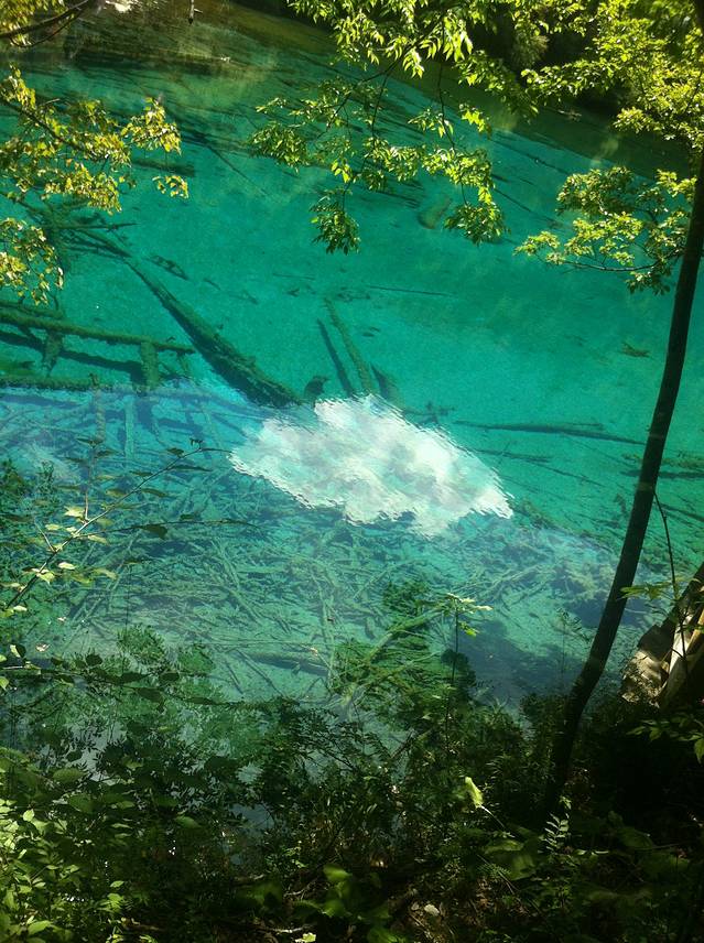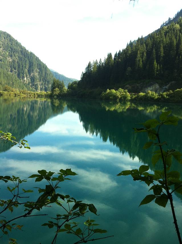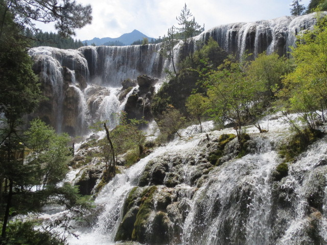 第二天就正是进入九寨沟了。好在错峰游,人并不是很多。所以觉得景色还挺美的。园区内有公交车。我们听说要一口气坐到原始森林。然后再往下走。毕竟我们的体力是到此一游性质的,也没有玩到所有的景点,可以自己带点吃的,不然里面只有自助餐厅,泡面,和可以自己加热的饭。就PO几张风景照吧。根本不需要盗图,随便拍拍都很好看。