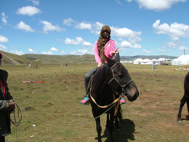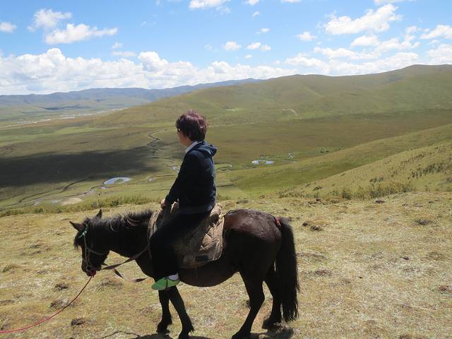 这是最高的地方了。视野很开阔,一样没什么人。很爽!这里200不到,骑个马,没有臭味,走很远的路,一路空气很新鲜。走到我比马还累。有人担心不会骑马有没有问题。有人会带你的,一个人带两匹马,带的人会坐在你后面。带骑马的人问,你们谁要我带,无奈被我妈捷足先登。我就一个人骑,事后证明,没什么问题,而且倒是想学骑马了。