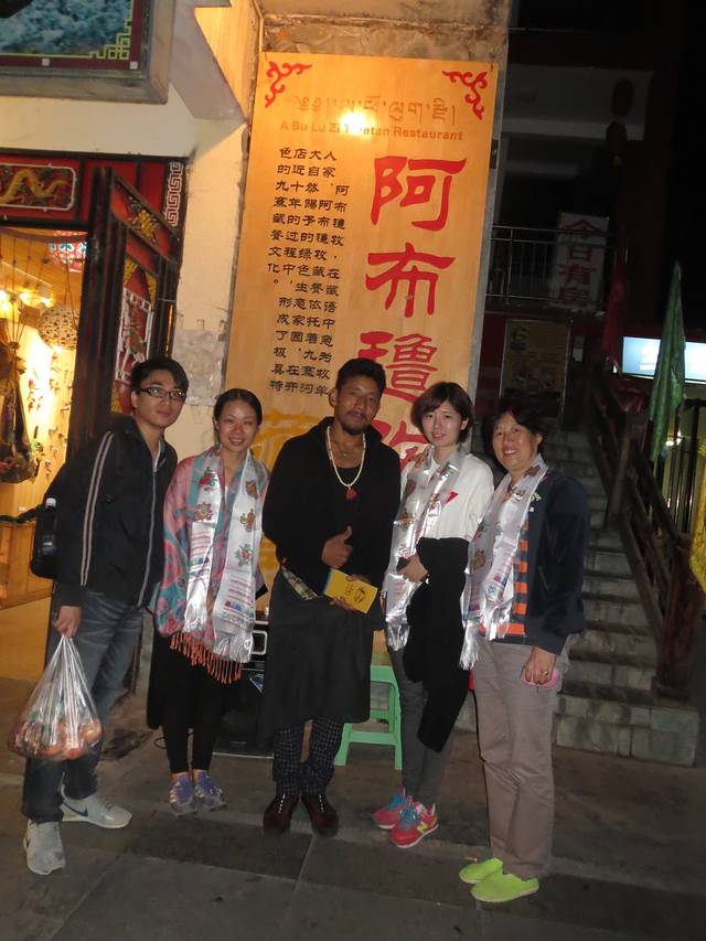 因为是加特色饭店。所以我们还和店主留影了。小伙伴手里买了好多水果啊。那是当地的水果还真的挺便宜的。正是这顿饭促进了我们深深的友谊。
