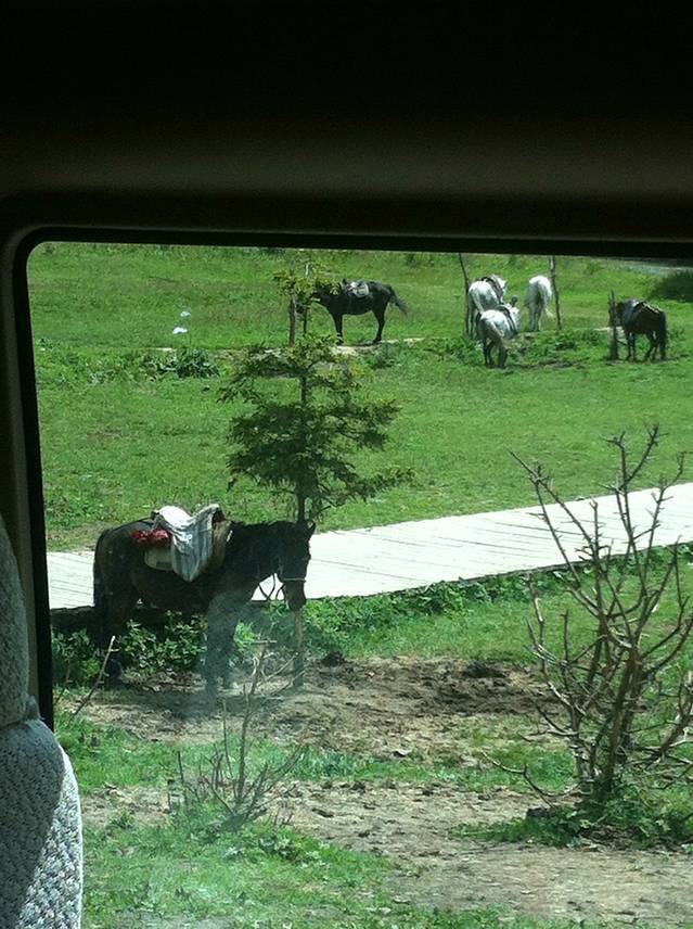 小巴才开出机场,路上你就能看到了各种马,牦牛什么的。第一天觉得好稀奇。之后几天就习惯了。车是不能撞牦牛和马的,所以遇上了就得让它们先走。