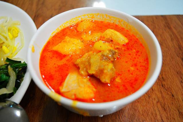 鸡肉炖土豆,里面加了泡菜,超级好吃,没出息的大叔又吃撑了。