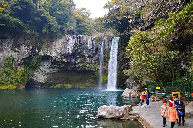 八点从酒店出发,一刻钟的时间就来到了天地渊瀑布。它位于西归浦市的七十里公园里,说是宇宙初始是天地碰撞出了一处瀑布。天地渊瀑布不大,但周围的景色还蛮精致漂亮。