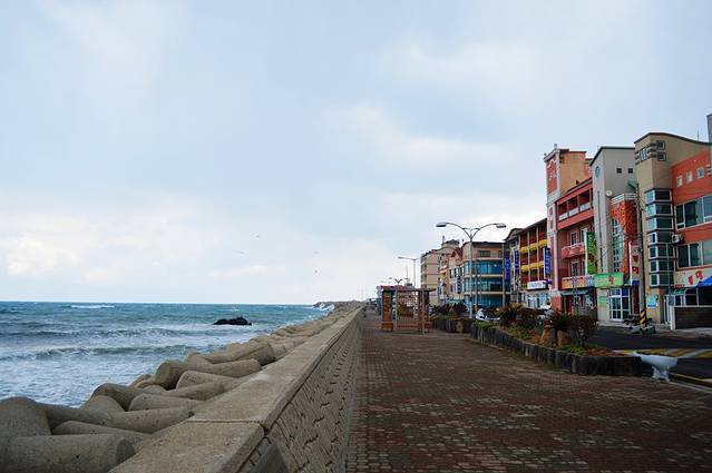 我们先来到了emart超市旁的海边,西西说这是好多刚来济州的人看海的地方。