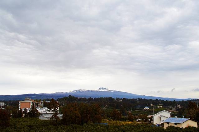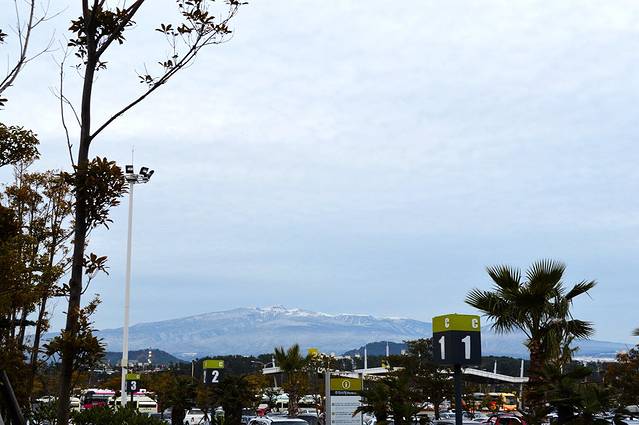 走出机场,迎面就看到汉拿山。因为此山位于济州岛中心地带,又是韩国最高的山峰,所以在济州随时可见。有富士山的感觉呢?