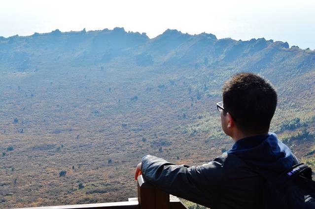 从一个展馆出来,看到了远处的汉拿山,这个角度欣赏它倒是不错。