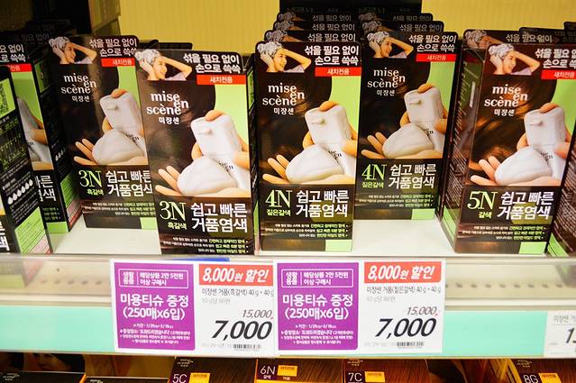 染发的3N特价,昨天被抢购一空,今天来得早,很幸运。原价KRW 15000,现价KRW 7000。