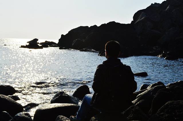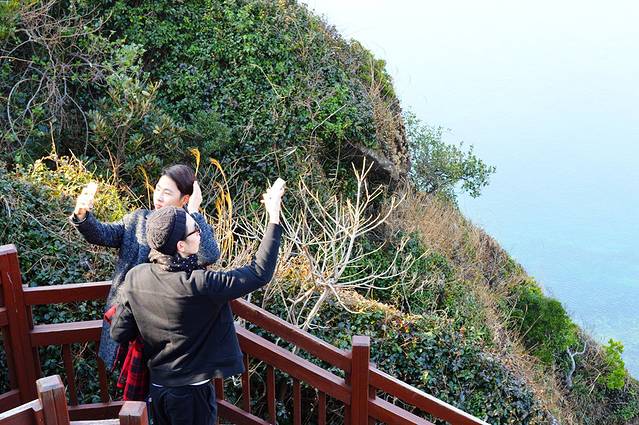 下山的途中位于山脚下的右侧,在这里能看到海女。虽然没有看到海女潜水,但是能够和海女合影也是非常幸运。