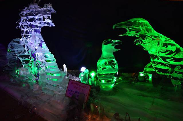 这是济州第一个四季常设的室内冰雕展示馆,全年室内保持零下5℃。馆内展示了代表济州的泰迪熊冰雕、朝鲜民族风情等,除此之外还有冰滑梯、冰屋等。