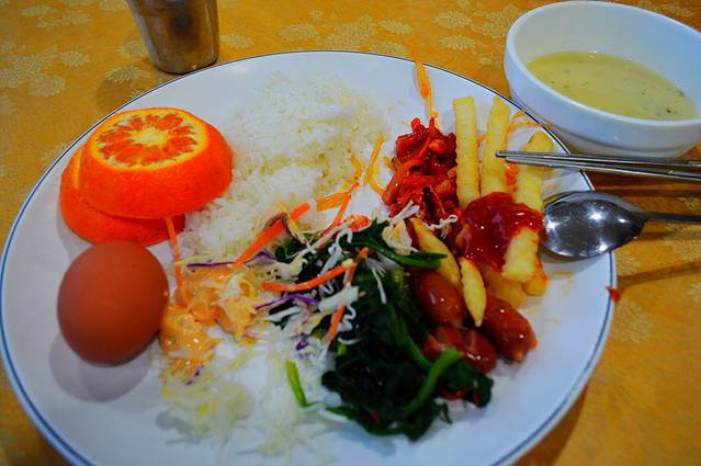 同伴还没吃晚饭,把东西放酒店后立马找食去。