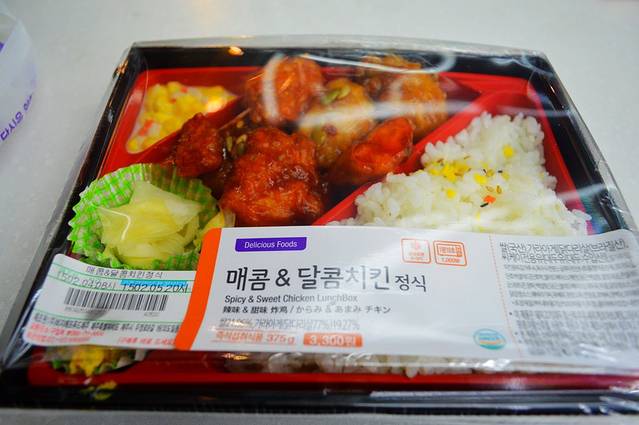 饿了,买了鸡肉饭(KRW 3300),超市里还给加热。原来幸福就是饿了有饭吃。