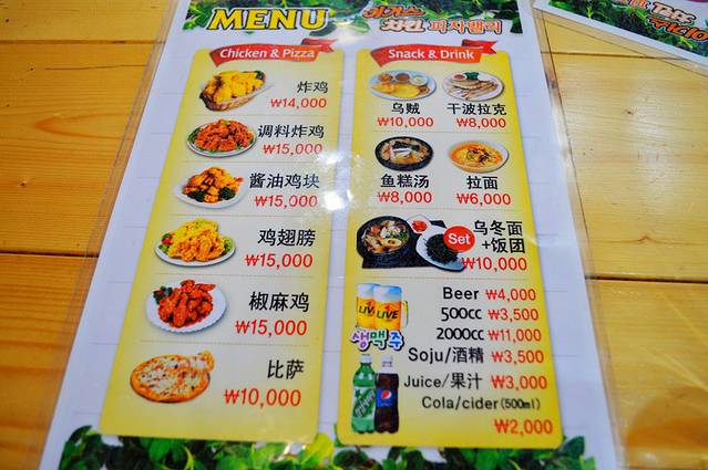 从小就生活在朝鲜民族聚居的地方,所以韩国的饮食特别符合大叔的味口,不论是团餐,还是自己觅食,反正火锅、烤肉、泡菜……及小食炸鸡、啤酒、香蕉牛奶、柑桔……把大叔催胖了三四斤~