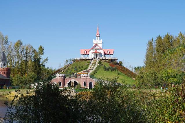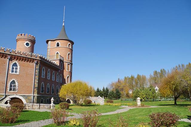 不得不说,哈尔滨这个城市真的很大,这个景点离市区也很远.需要坐车到指定地点集合,然后有专门的车接到庄园.从中央大街到指定的集合地要一个小时左右,而从集合地到庄园还要30分钟的车程.好在老天爷爷很给力,天气出奇好,虽然经过一路的艰辛,但是也觉得值了.