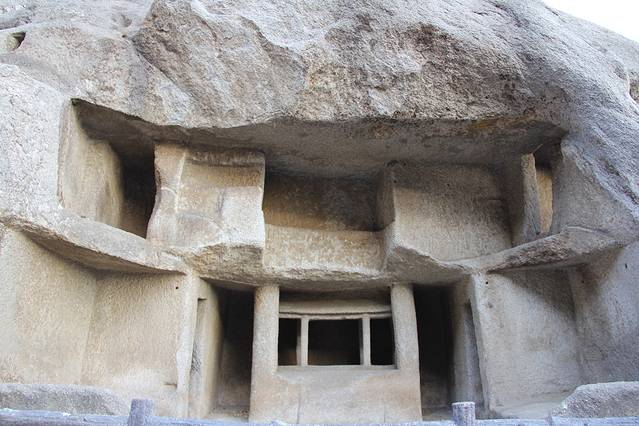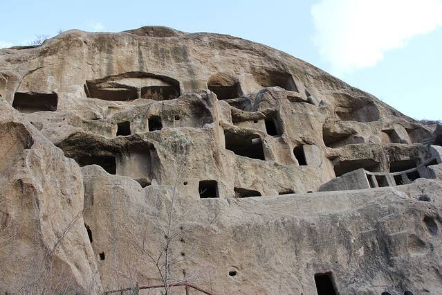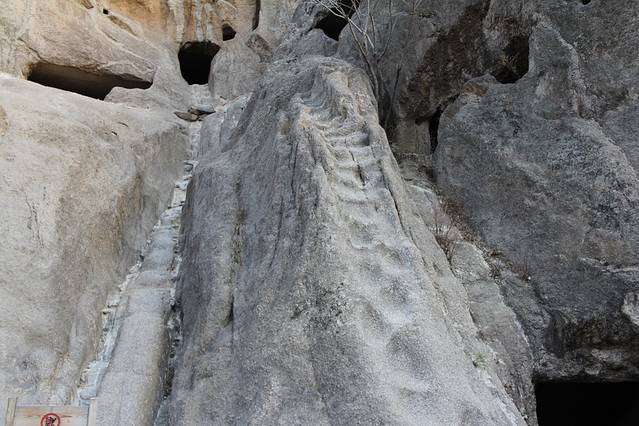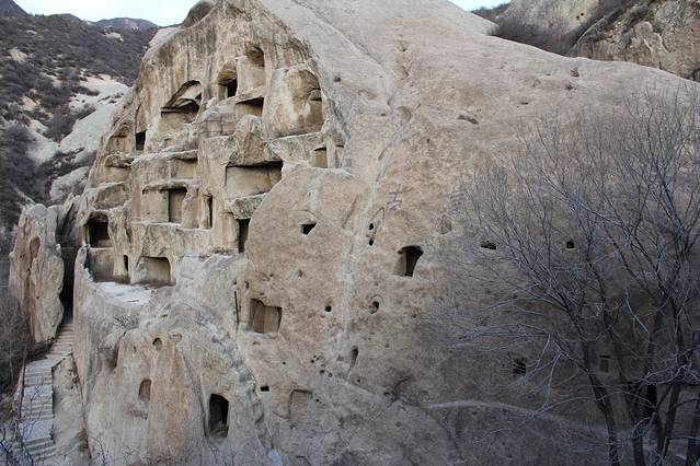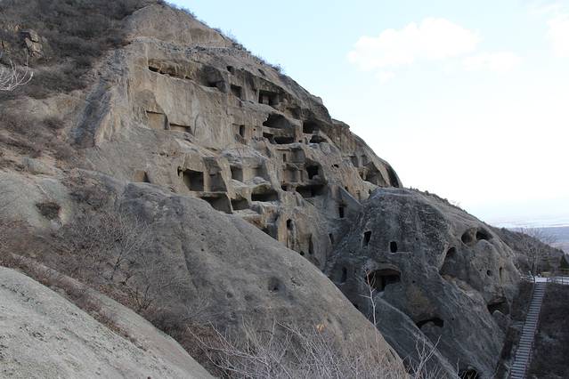 此图是前山全景,上面是保护起来不能进的,下面的一层开放了几个洞可以参观