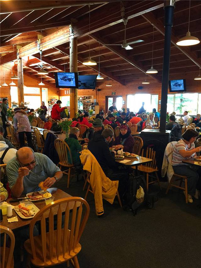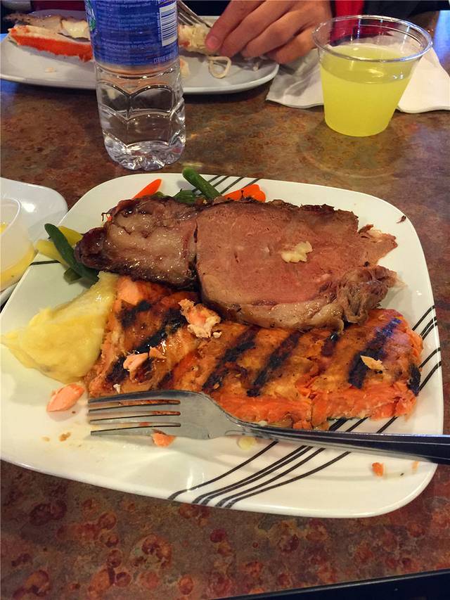 行程基本走完,晚餐时间到了。我们来到了fox island吃牛排,三文鱼加蟹腿。岛上还有个礼品店,可以选购些纪念品。这里是自助餐,觉得吃得不够再回去拿。我的评价就是蟹腿最最好吃且价格公道, 提前订只要25刀/磅,远远低于后来在餐馆看到的若干次价格。三文鱼和牛排略干涩,不过仍然很美味。自助餐的种类选择不多,累了一天了,吃啥都香。