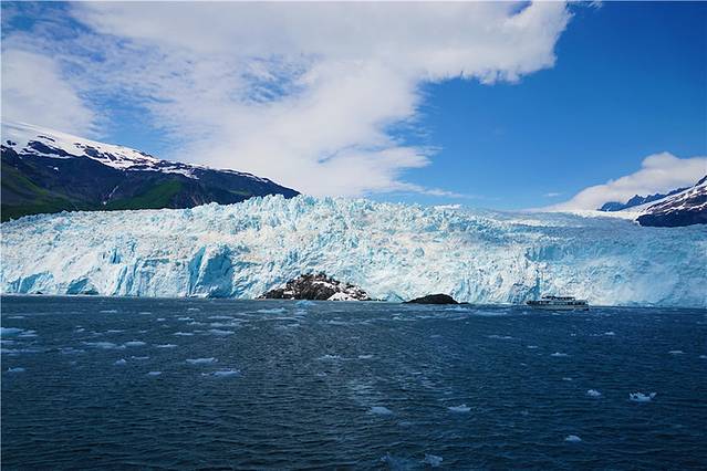 Bear Glacier,连接着基奈峡湾国家公园的Chugach Mountains和复活湾 可爱慈祥的讲解员老爷爷告诉我们,自从1986年的NASA卫星照片看来,冰川在不断的减少,证明着气候不断的变暖。