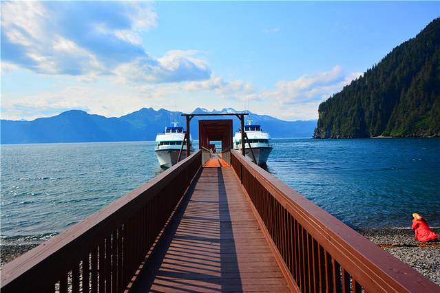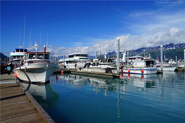 Seward 海港是我见过的最漂亮的船码头。这里清澈的海水倒映着雪山,漂浮着游轮,得天独厚的地形让人感到美不胜收。